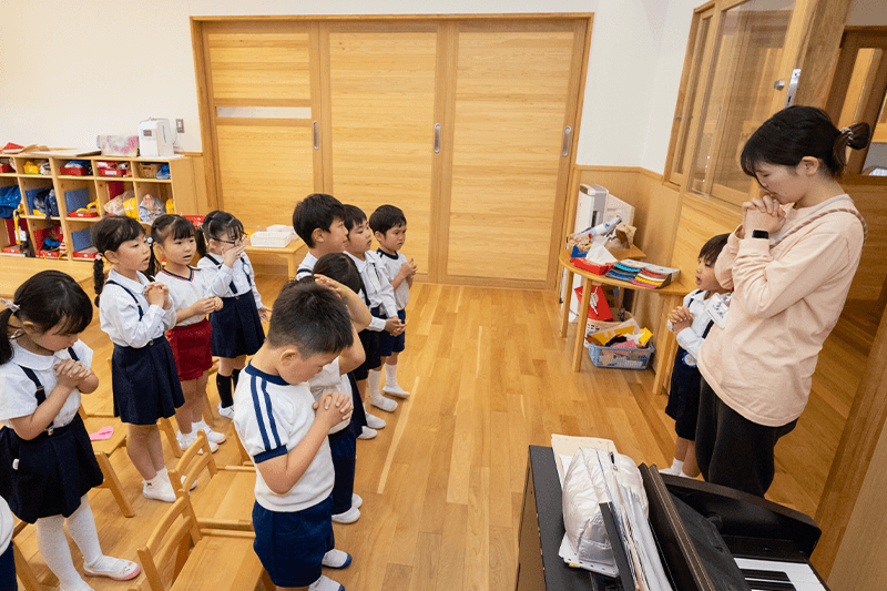 共に祈ることで、感謝、喜び、信頼感に満たされて、自分が神様や両親や先生に愛されていることを実感させたいと思います。 - 奉仕の精神を通して、積極的に周りの人々に働きかける体験を必ずさせたいと思います。