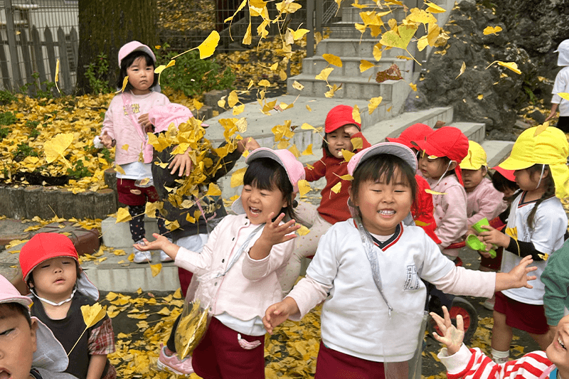 園外に出て駿府公園や城北公園の豊かな自然を四季折々の保育に取り入れて、自然に親しむ保育を行っています。
