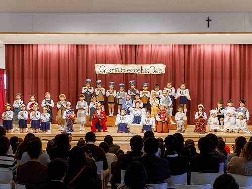 年長さんは毎月、神父様から神様のお話を聞きます。