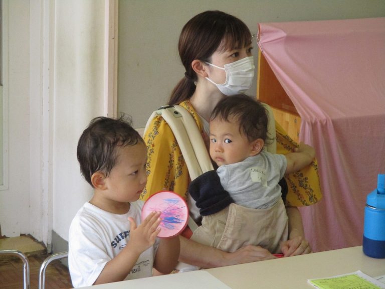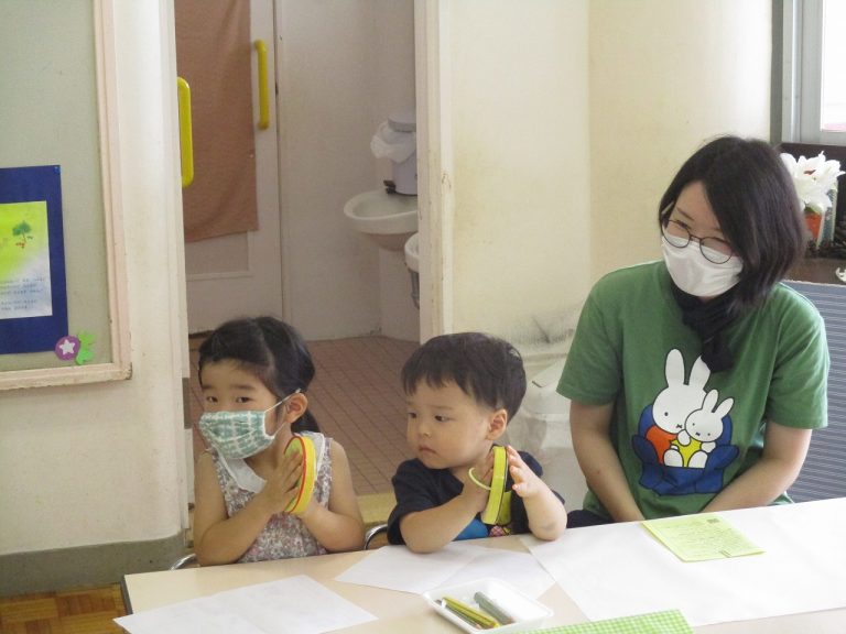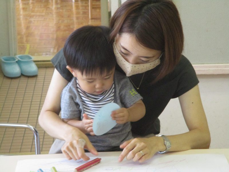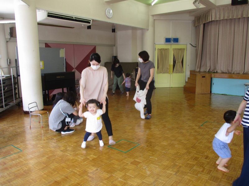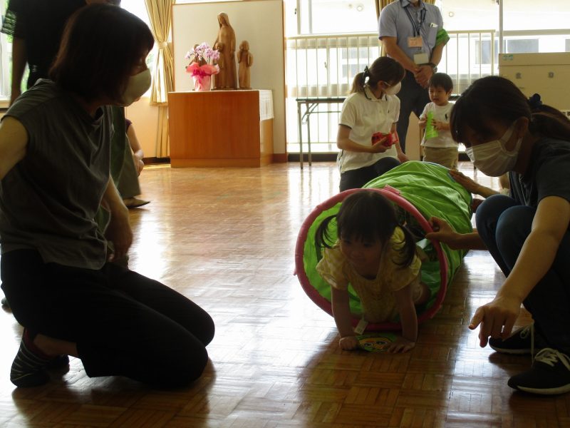 発音の練習はもちろんのこと、絵合わせをしたり、トンネルをくぐったり楽しみながら英語に触れました。