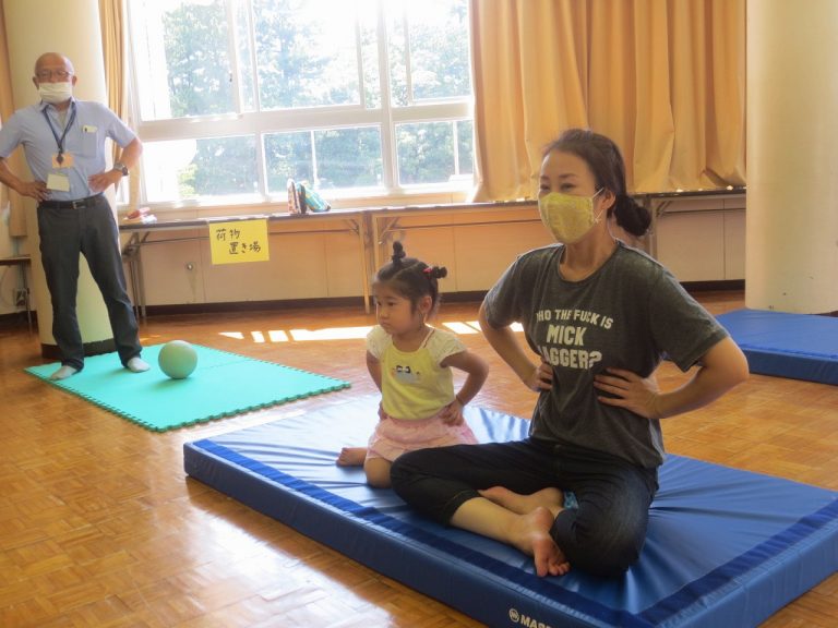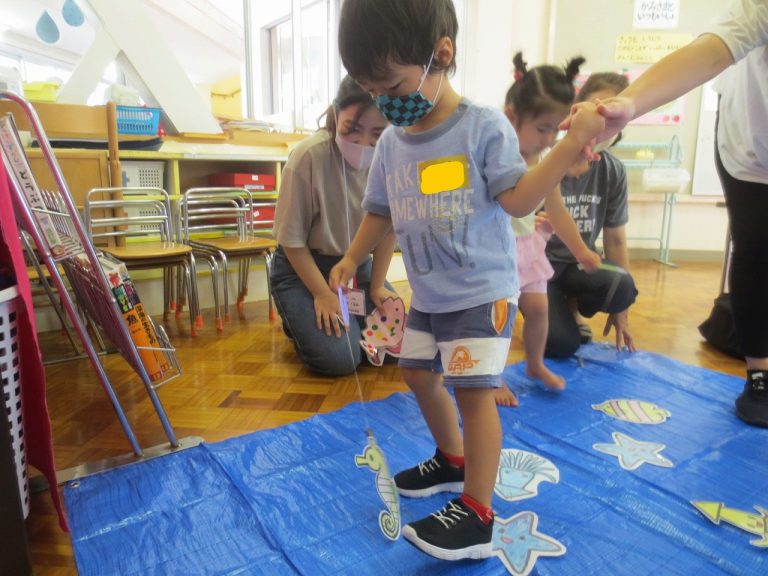 在園児のお母さまを講師にお迎えして親子のピラティスと手作り魚釣りをしました。