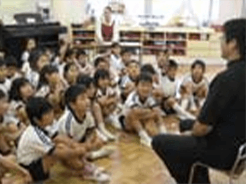 年長さんは毎月、神父様から神様のお話を聞きます。