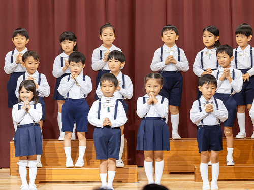 これまでの成長を感謝して聖堂で神父様から祝福をいただきます。